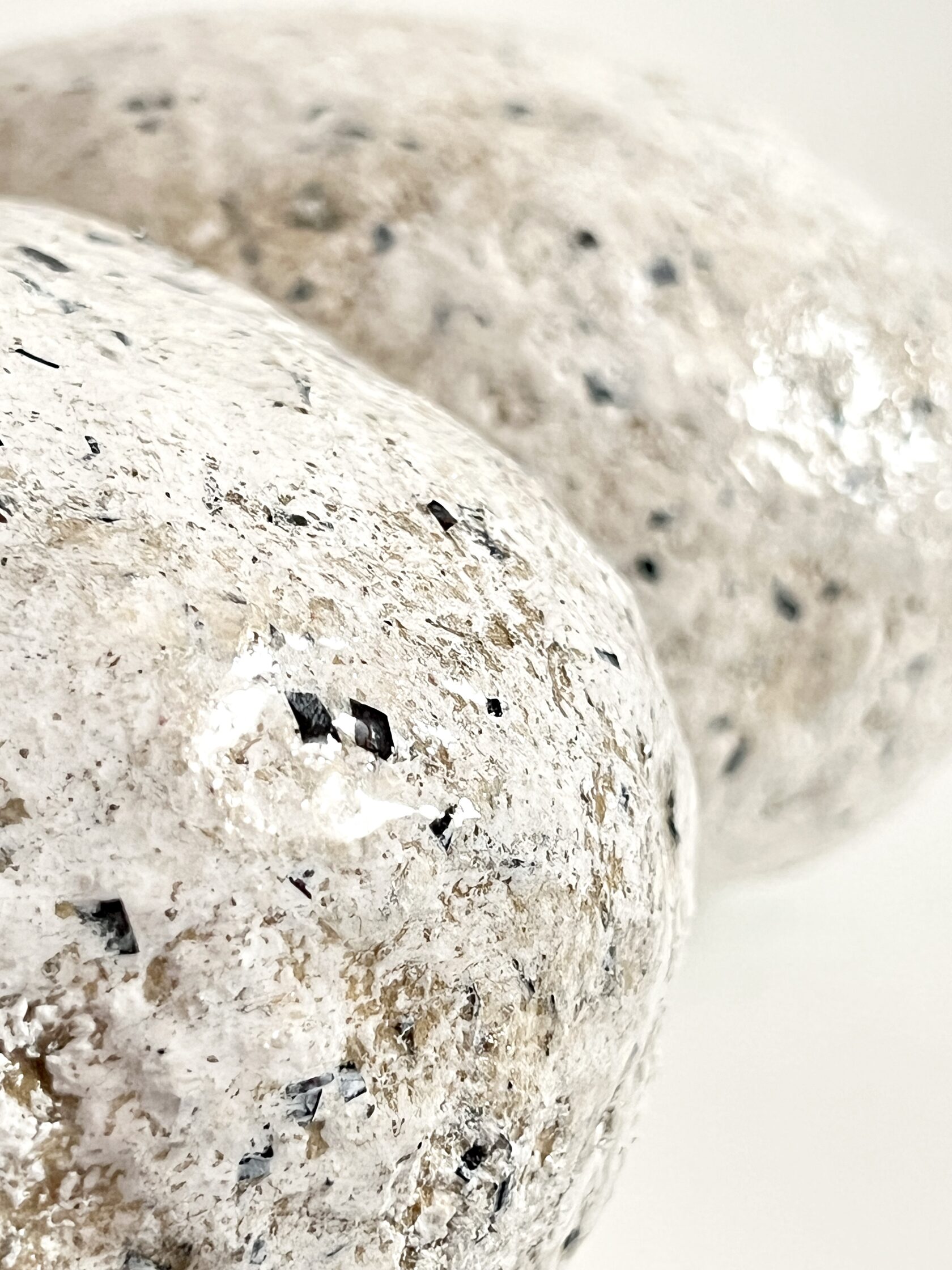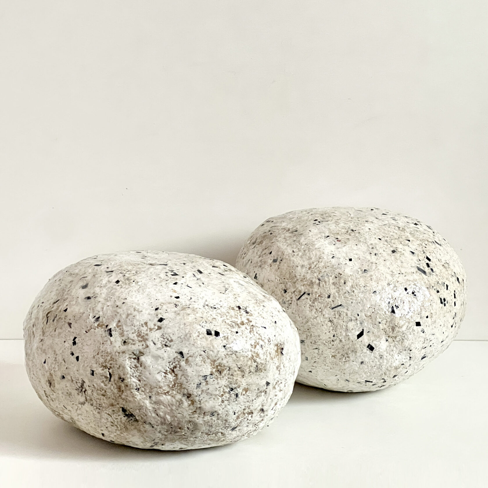 Объект сделан из папье-маше, которое наслаивается на основу, сформированную из неорганического мусора (пластика, полиэтиленовых пакетов, оберток от конфет) как метафору ежедневного одноразового цифрового шума. Минималистичный артефакт визуальной тишины, скрывающий под своей оболочкой "визуальный фарш повседневности".
