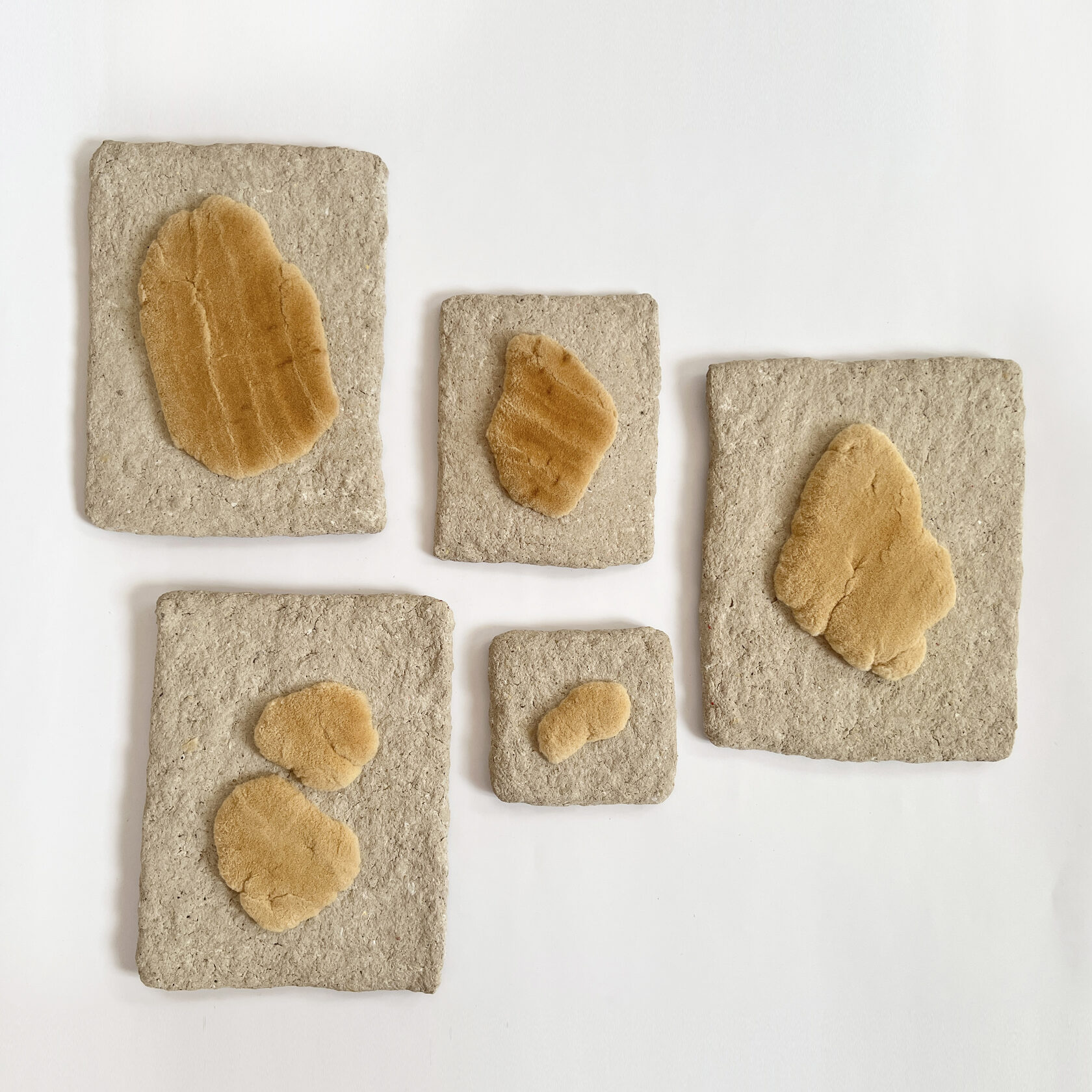Объекты (папье-маше, полиэтиленовый мусор, чайные пакетики, лак)