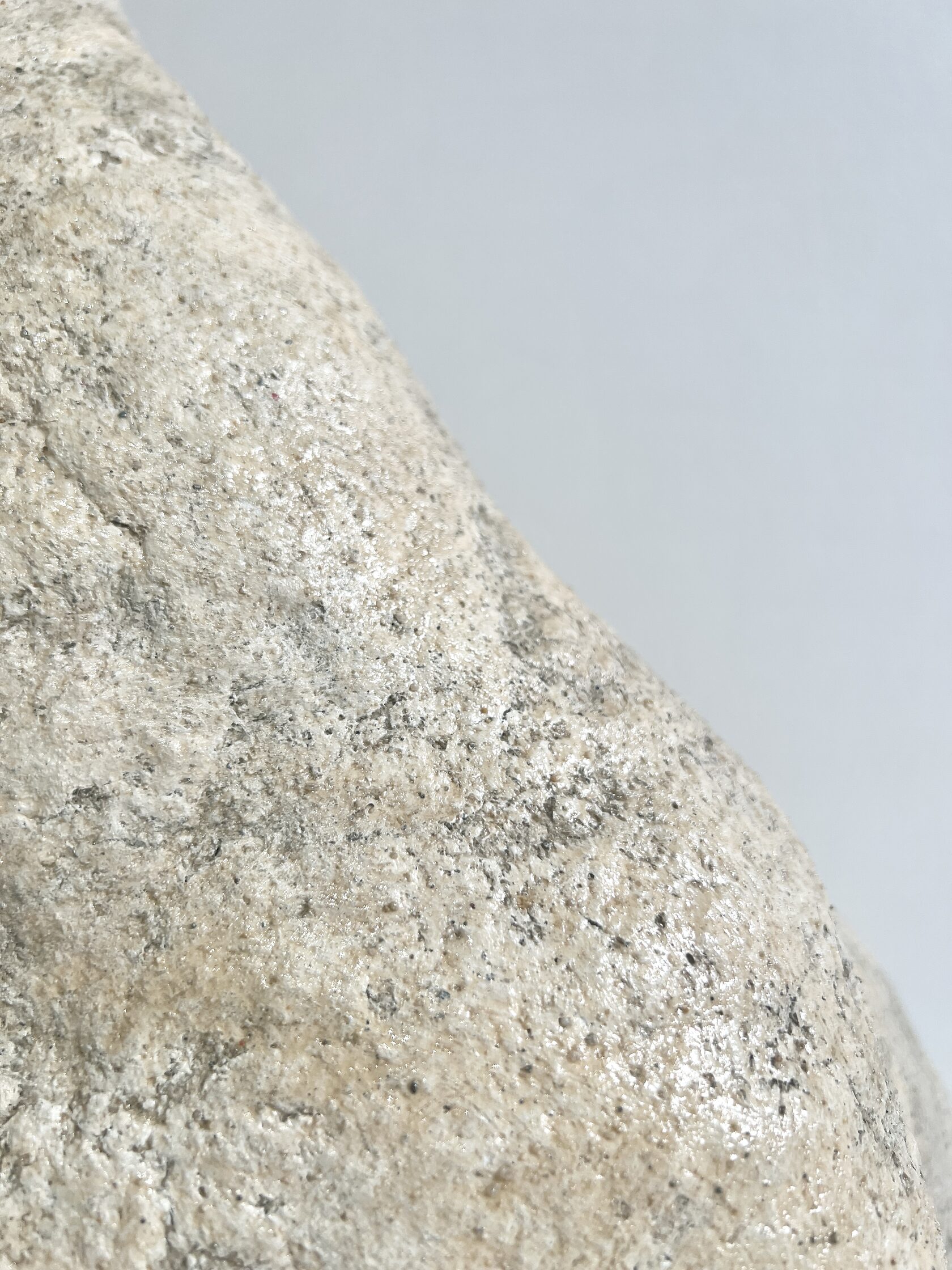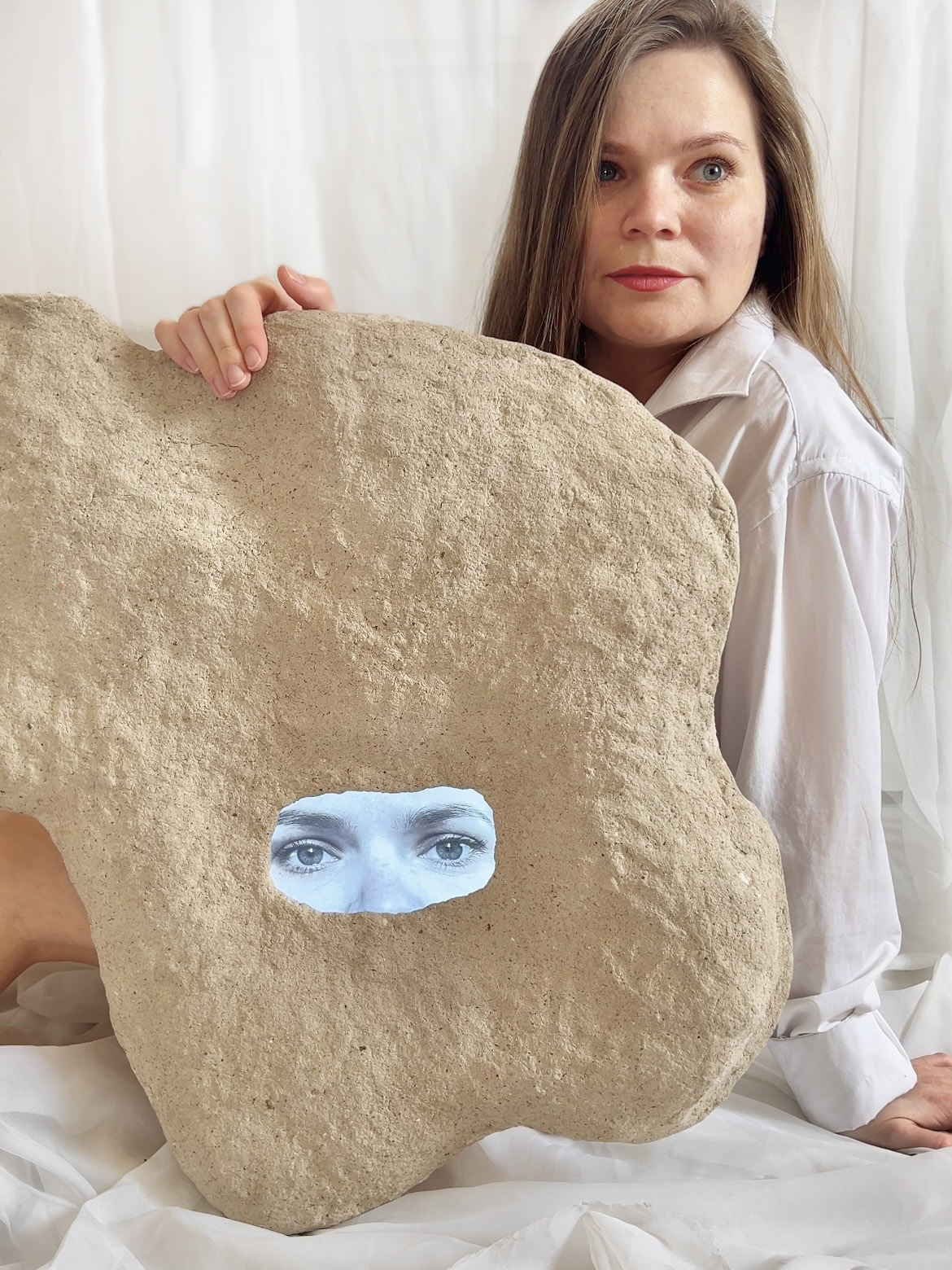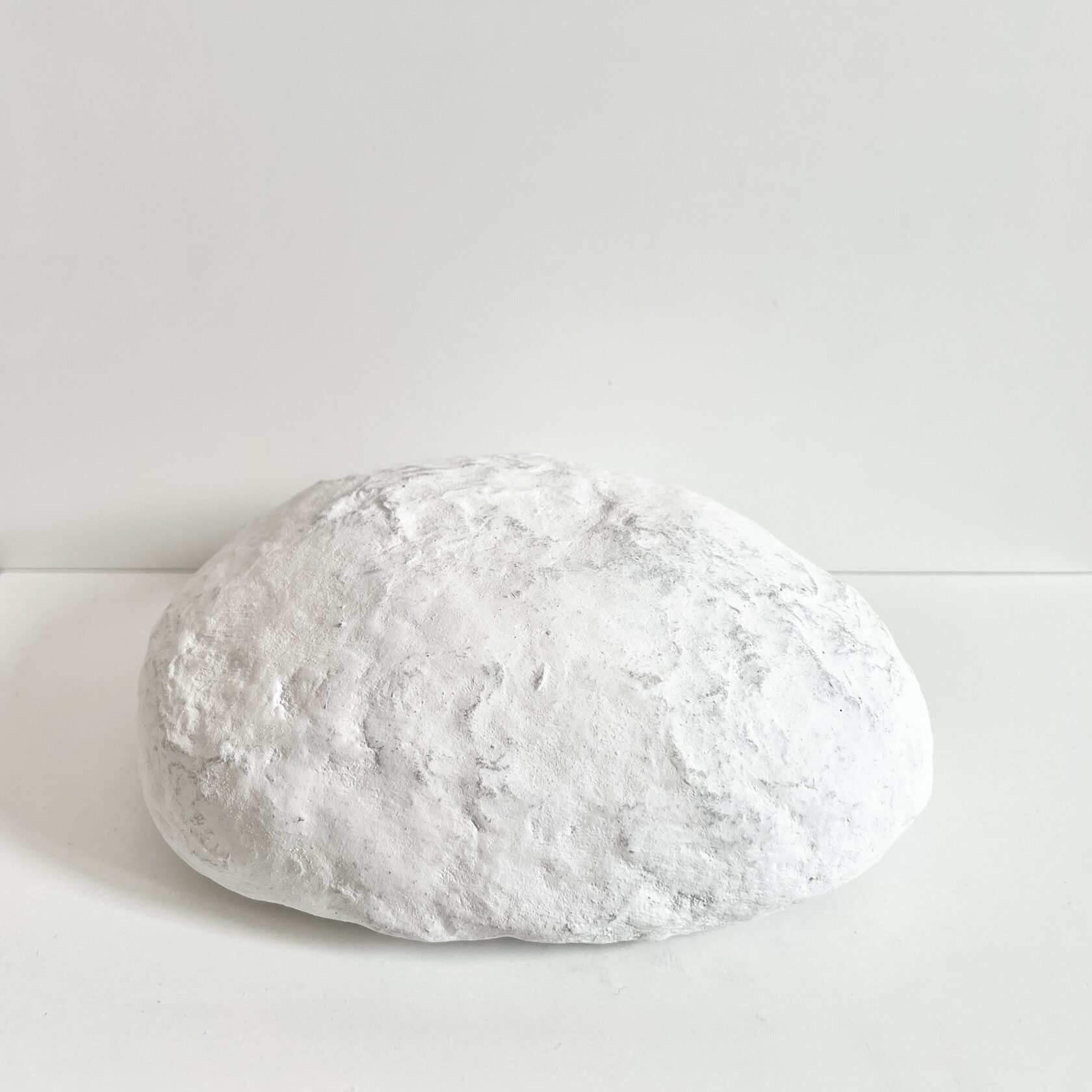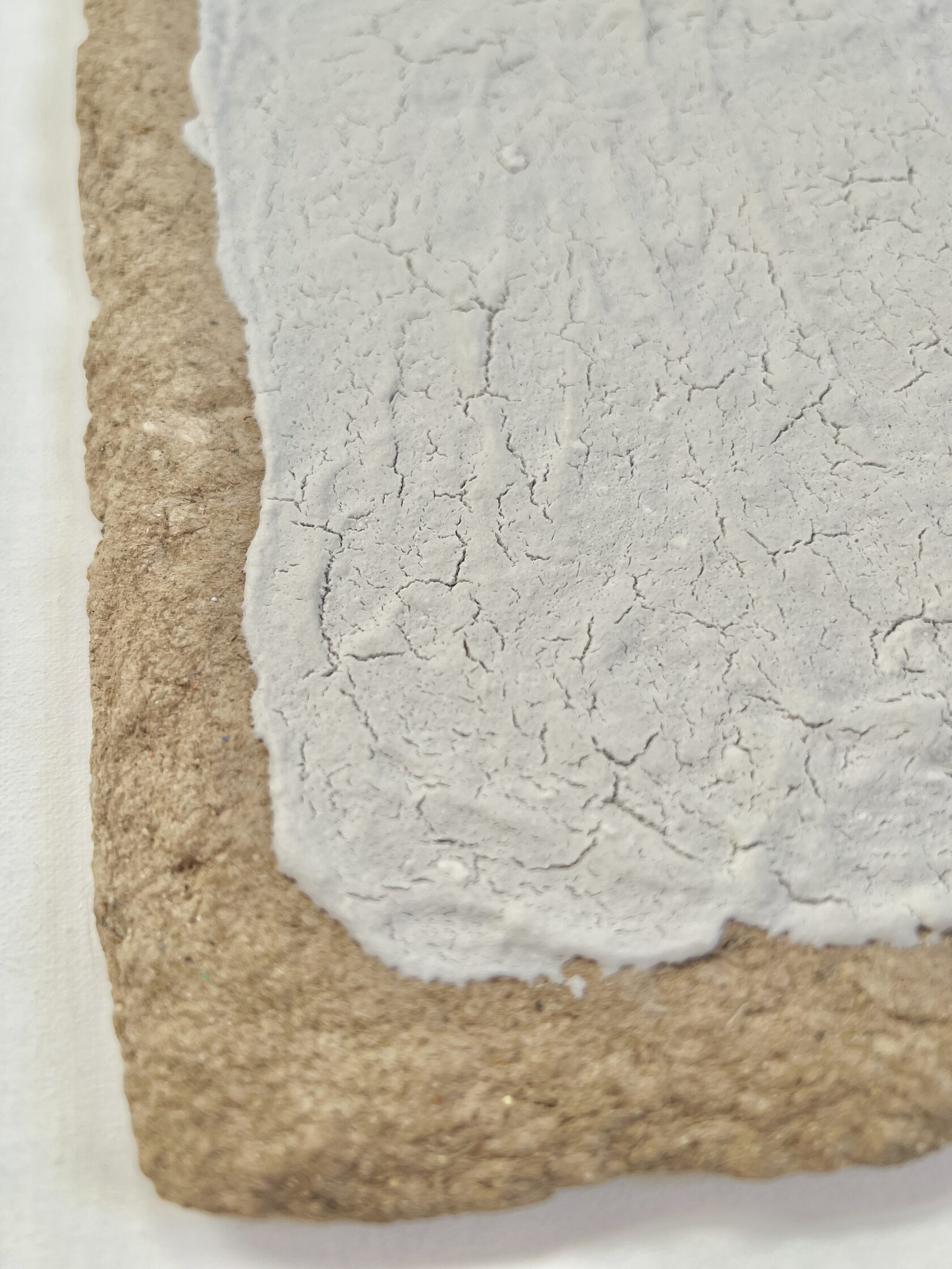 Объект сделан из папье-маше, которое наслаивается на основу, сформированную из неорганического мусора (пластика, полиэтиленовых пакетов, оберток от конфет) как метафору ежедневного одноразового цифрового шума. Минималистичный артефакт визуальной тишины, скрывающий под своей оболочкой "визуальный фарш повседневности".