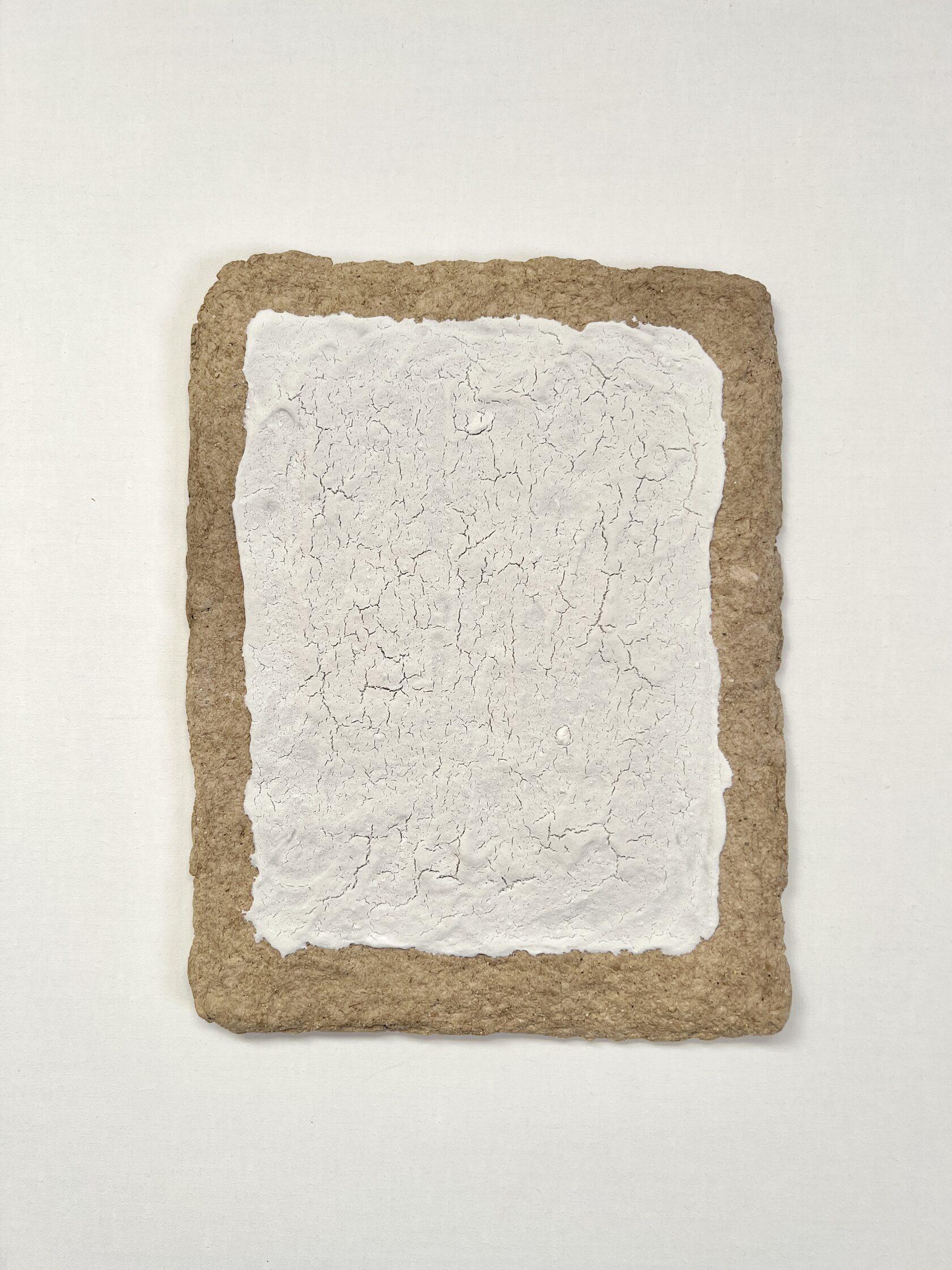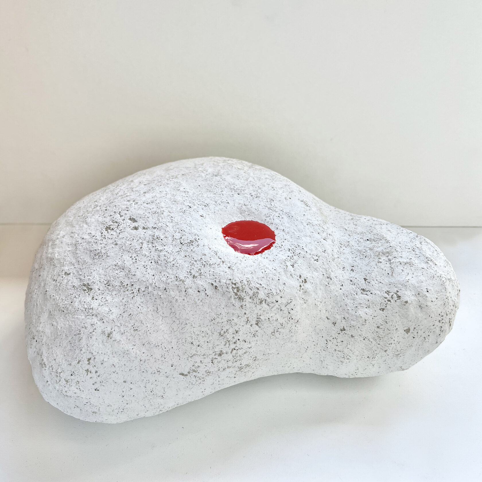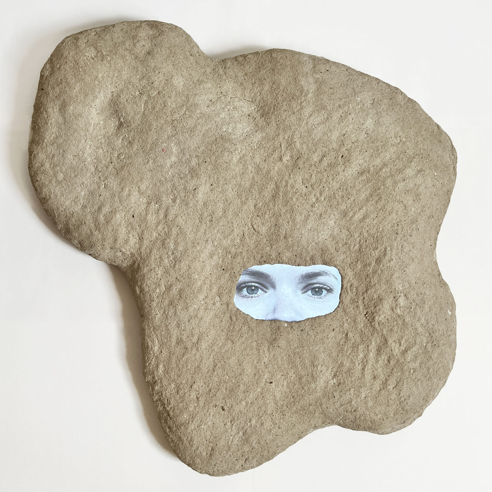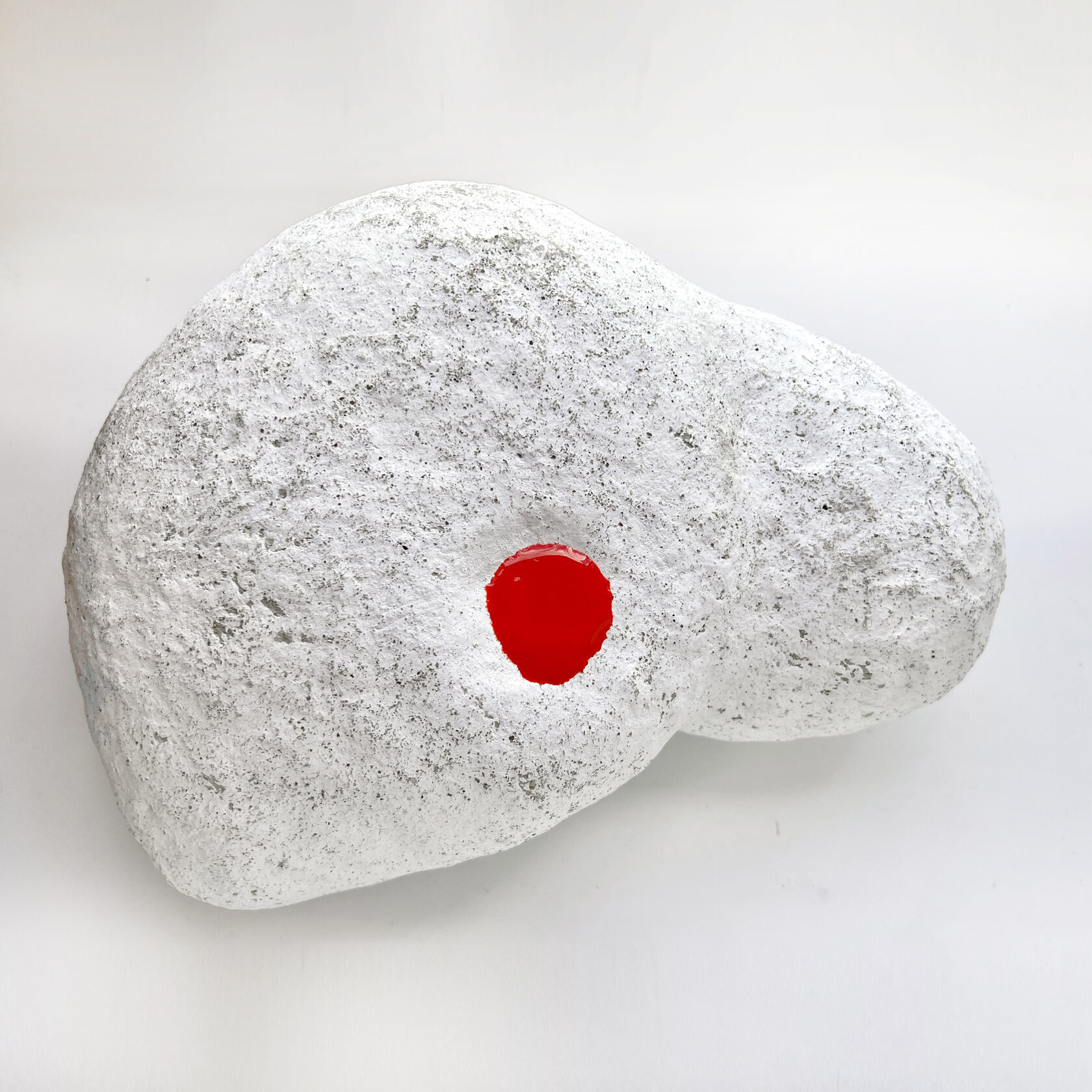 Объект сделан из папье-маше, которое наслаивается на основу, сформированную из неорганического мусора (пластика, полиэтиленовых пакетов, оберток от конфет) как метафору ежедневного одноразового цифрового шума. Минималистичный артефакт визуальной тишины, скрывающий под своей оболочкой "визуальный фарш повседневности".