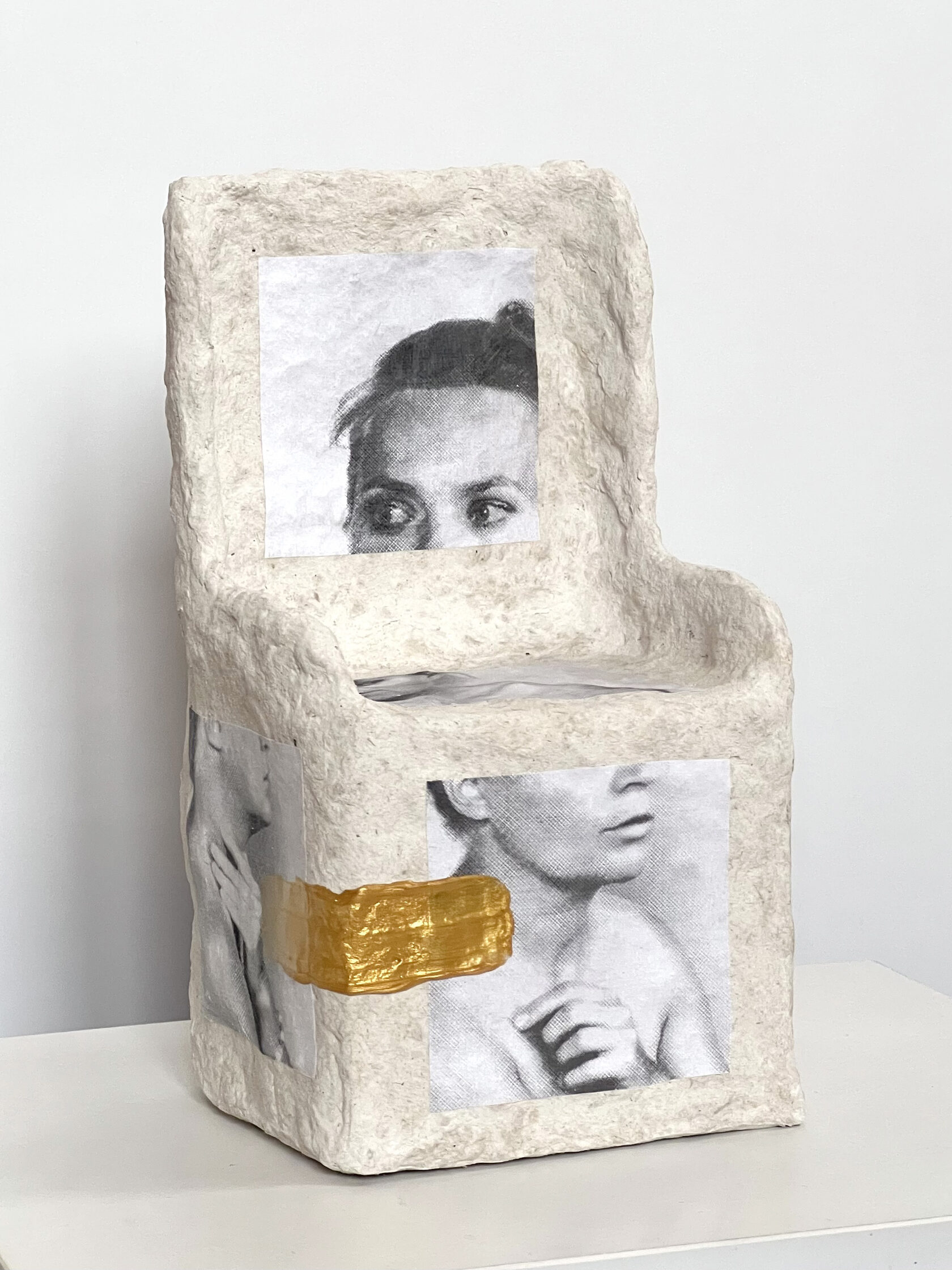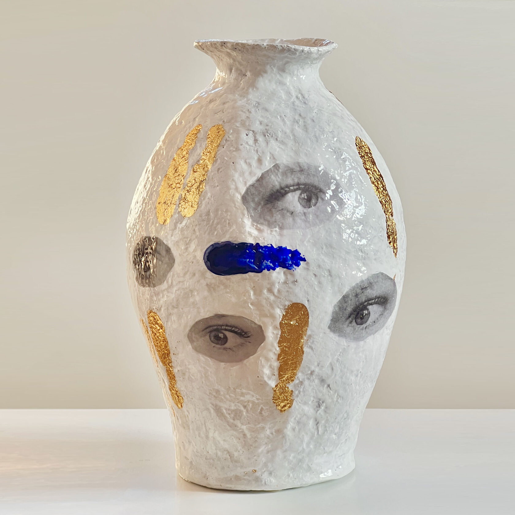 Предмет коллекционного дизайна, напоминающий керамику, но не являющийся керамикой. Объекты сделаны из папье-маше, которое наслаивается на основу, сформированную из неорганического мусора (полиэтиленовых пакетов, оберток от конфет, лопнувших воздушных шариков) как метафору ежедневного одноразового визуального шума.
